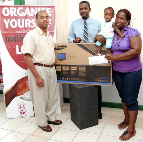 The lucky winners of the Bottle & Spoon Loan Promotion were all presented with their brand new 32″ LCD Televisions by Credit Administration Manager – Mr. Ainsley Andrews.